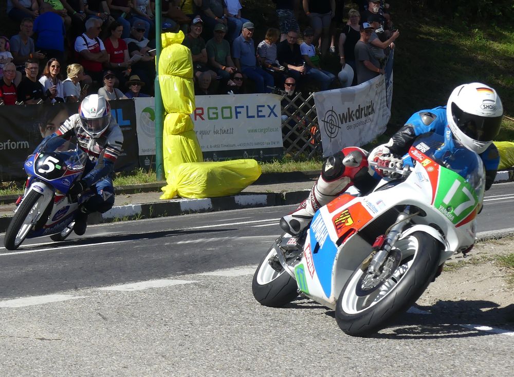 Am letzten Augustwochenende fand auf dem Hausruck-Ring unweit der Stadtgemeinde in Oberösterreich wieder der Oldtimer Grand Prix für historische Sport- und Rennmotorräder ab Baujahr 1920 statt. Volles Haus konnten alle drei Kategorien bei den Gespannen verzeichnen. Die akrobatischen Einlagen der Herren und Damen in den Seitenwagen kamen bestens an und erzeugten spontan immer wieder Beifall. Was schlicht als „Beiwagen ab 1981“ tituliert war, hatte es in sich. Wer will, kann sich mal die Mühe machen und zusammenzählen, wie viele Weltmeister-Titel Tim Reeves mit Kevin Kölsch und die bewährten Kombinationen Rolf Biland – Kurt Waltisberger oder Markus Schlosser mit Marcel Fries auf sich vereinen. Eigentlich als Solist vor Ort turnte Manfred „Yeti“ Wechselberger kurzerhand bei Patrick Werkstetter. Franz Kapeller/Markus Billich, die Bachmaier-Brüder oder Peter Kirmeswenger mit Ondrej Sedlacek – weitere aus der WM, IDM oder der Sidecar-Trophy bekannte Namen rundeten das Feld ab. Wehmut kam beim letzten Lauf am Sonntag auf, da Rolf Biland seinen Rücktritt bekannt gegeben hatte. Sein bekanntes gelbes LCR-Swissauto Gespann ist verkauft und wandert ins Museum. Ob man ihn zukünftig nur noch als Zuschauer in Schwanenstadt sehen wird, stellte Kurt Waltisberger etwas mit „der baut sich schon wieder was auf“ infrage. Schwanenstadt hat einfach seinen ganz eigenen, besonderen Flair. Das spiegelt sich nicht nur in vernünftigen Eintrittspreisen und einem interessant gestaltetem Programmheft wider, sondern auch wie die Streckensprecher Karl Meier und Walter Ameshofer beide Tage informierten und Interviews führten. „Wir hatten Gänsehaut“ vermeldete eine Crew, die zum ersten Mal vor Ort war und meinte dabei nicht nur die Fahrerpräsentation mit Parade aller Teilnehmer, sondern auch den Auslauf ins Fahrerlager. Dort hielt es die Zuschauer nicht auf den Sitzen, sondern sie spendeten jedem Applaus oder schwenkten Kopfbedeckung und Programmheft. Stolz darf die MSV aber auf ihre Besucher sein, die selbst ausharrten, als nach einem glücklicherweise glimpflich verlaufenen Unfall die Abschiedsrunden von Rolf Biland sich verzögerten. Selbst kann man nur hoffen, dass man so fit bleibt wie Mühlfried Minnich, der mit 87 Jahren immer noch mit einer Yamaha TZ 250 dabei war, um so noch möglichst den Oldtimer-GP besuchen zu können. |