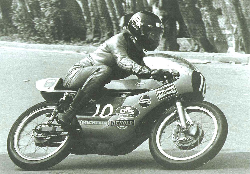 Im Frühjahr 1976 trat ich schließlich zweimal mit diesem Motorrad bei italienischen Meisterschaftsläufen an und erreichte jeweils den dritten Platz – nur geschlagen von Paolo Pileri auf einer Werks-Morbidelli und Eugenio Lazzarini. Am 5. April 1976 kaufte ich eine neu angefertigte DRS von Peter Dürr und holte die Maschine zusammen mit Hans Hinn in Calderino/Monte S. Pietro ab. Bei meinem Freund und Mechaniker Thomas Binanzer aus Zimmern, wurde die DRS nun für Renneinsätze vorbereitet.
