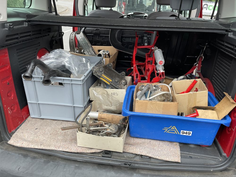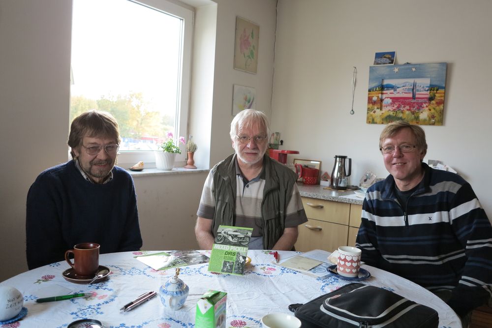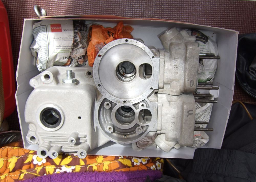 Ein paar Wochen später bin ich auf der Fahrt nach Kassel und von dort mit Peter Frohnmeyer zusammen nach Wahlstedt, zu Peter Schief. In den folgenden Stunden wird es mir etwas mulmig, die Teile der DRS sind dick eingestaubt, im Rahmen fehlen sogar die Lenkkopflagerschalen, viele Teile passen offensichtlich nicht oder fehlen ganz. Am nächsten Tag geht es mit einem Auto voller Teile wieder Richtung Heimat.