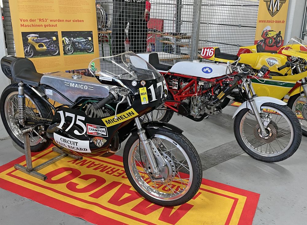 Nachdem dann Tank, Sitzbank und Schutzblech lackiert und montiert sind, sieht das Projekt schon ansprechend aus und wird vorzeigbar. Einiges Kopfzerbrechen bereitet noch die Verschlauchung des Kühlsystems und die Montage und Einstellung der Zündung. Und der Termin von Hockenheim 2025 rückt näher. Dort steht sie dann im September 2025 und kaum jemand kann mit DRS etwas anfangen. |