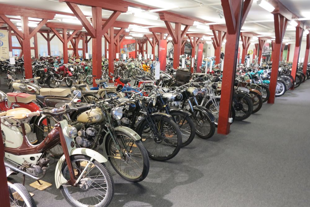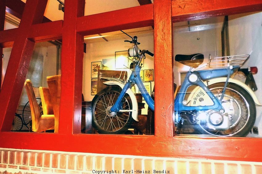 Wer alle drei Ebenen mit den hunderten von großartigen historischen Motorrädern aufmerksam zur Kenntnis genommen hat, ist jetzt bestimmt "fix und fertig"! Und das ist auch gut so, denn schließlich will so ein Museum den Besucher nicht gelangweilt entlassen. Es wäre schön, wenn man beim hoffentlich bald wieder möglichen regulären Museums-Betrieb sich hier in der Sitzecke mit einer Tasse Kaffee oder einem Glas Tee erfrischen könnte, dabei auf die hochklassige Sammlung der jüngeren Exponate schauen oder das mutige Konzept des intelligent gemachten Honda-Mofas P50 ("Hondas Riesenzwerge" hießen die damals in der Werbung) zur Kenntnis nehmen könnte. Die Sammlung hätte aber weit mehr Besucher verdient, als sie hier versorgt werden könnten. Warten wir also ab, wie die Einbecker Museums-"Macher" das Motorrad-Depot weiterentwickeln werden! Auch hinsichtlich der Besucher-"Versorgung"!