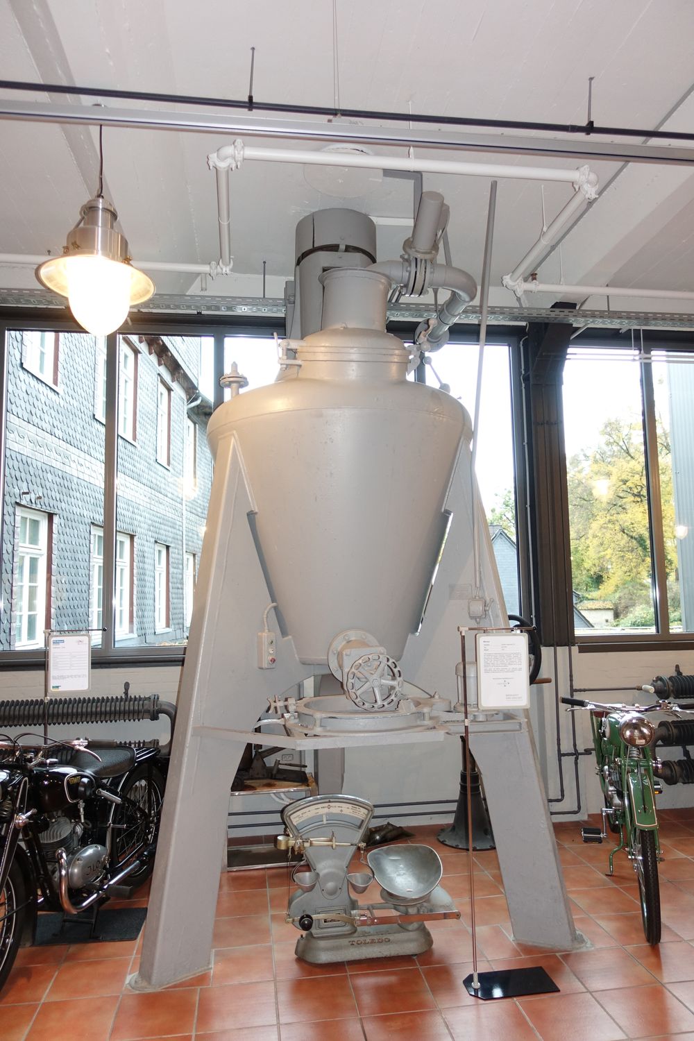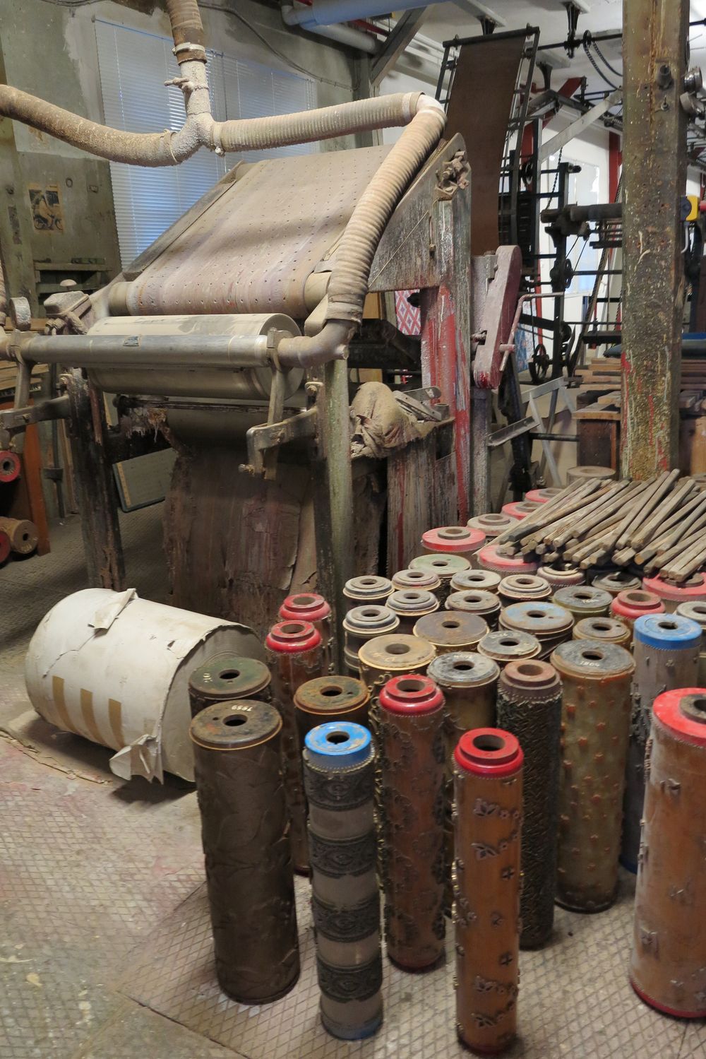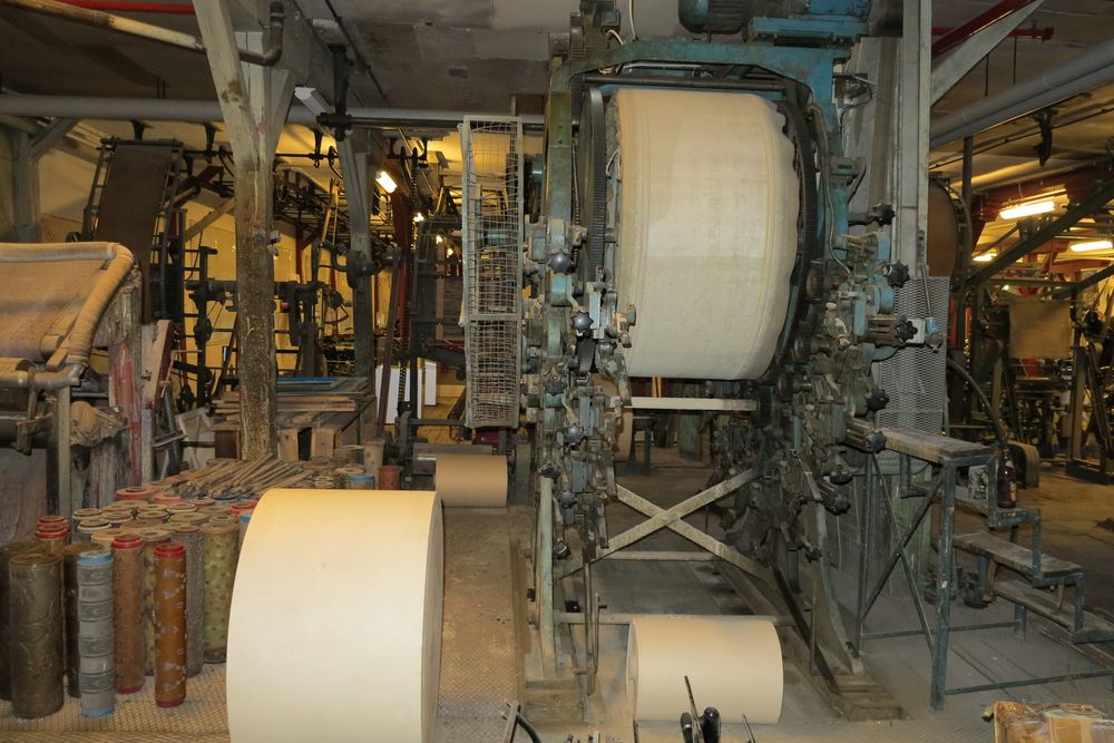 Da wir hier über museale Motorräder und nicht über museale Tapeten-Druckmaschinen und deren Umgebung berichten wollen, zeigen wir hier nur vier Impressionen über das, was von der früheren Bestimmung des Gebäudes noch vorhanden ist.