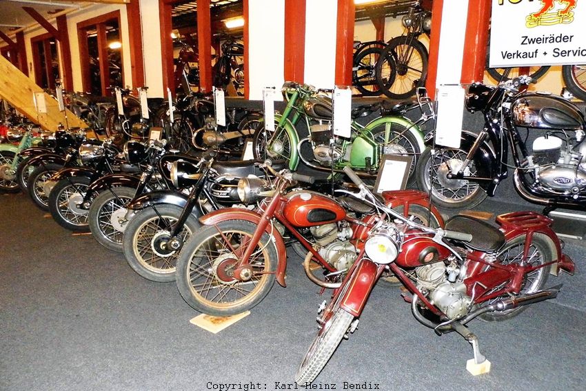 Nun noch drei Impressionen, welche Menge an Exponaten allein im zweiten Obergeschoss des Motorrad-Depots ausgestellt sind. Hier kann der an der deutschen Motorradgeschichte interessierte Fan schon einmal ausschließlich ein paar Stunden verbringen, ohne zu wissen, was ihn in den anderen Geschossen noch erwartet. Schließlich handelt es sich in Einbeck zusammen mit dem PS.SPEICHER um die umfangreichste Sammlung deutscher Motorräder weltweit! Abschließend zu unserer Vorstellung dieser Ebene.....