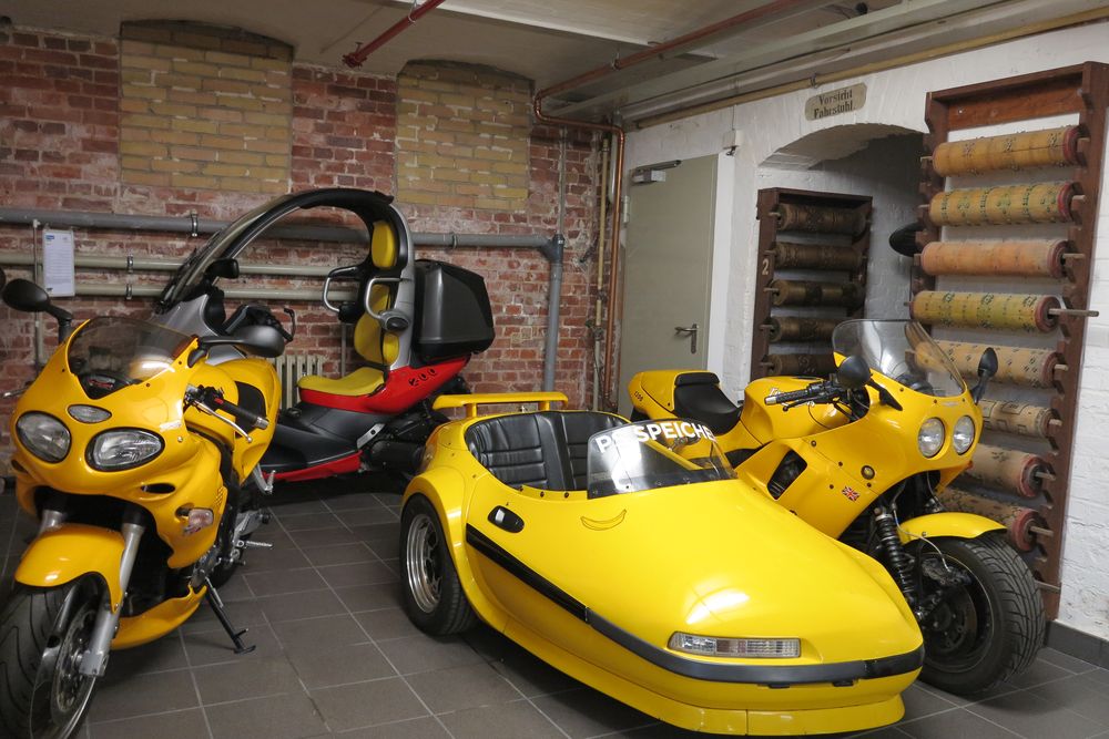 | Hier ist jetzt nur wichtig: Das Motorrad-Depot befindet sich im denkmal-geschützten Gebäude der seinerzeitigen Tapeten-Fabrik "Vereta". |