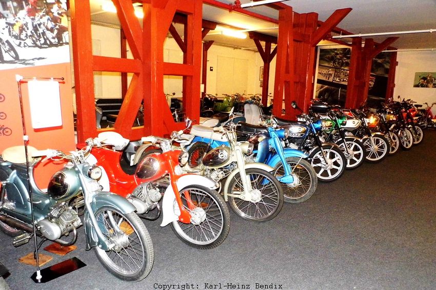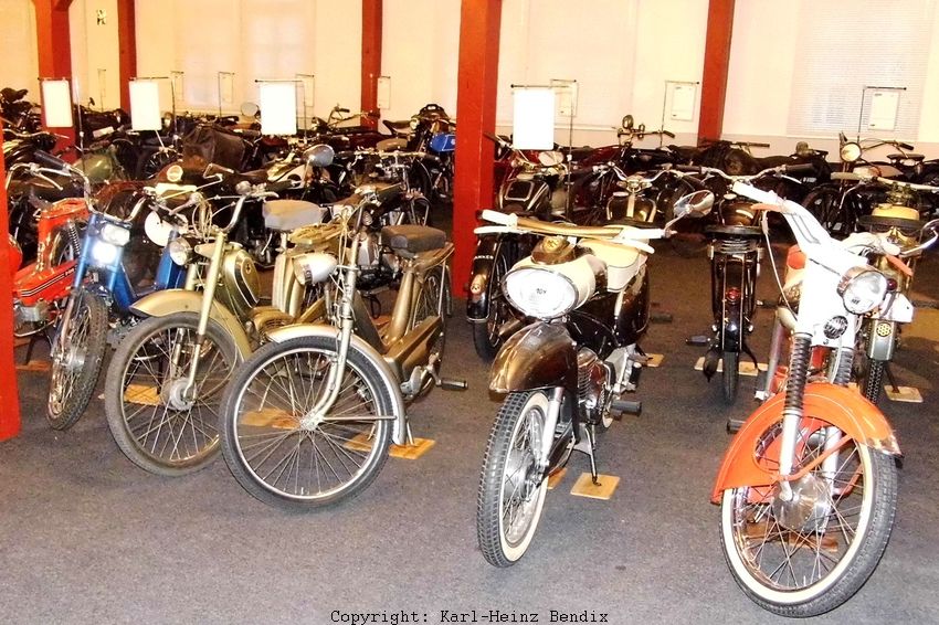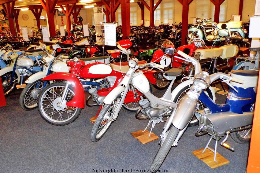 | In den 50er Jahren beherrschte zuerst NSU den Moped-Markt in der Bundesrepublik mit vielen unterschiedlichen Modellen. In Einbeck findet man sie alle wieder, von den in großen Stückzahlen produzierten Standard-Typen bis zu den damals schon exotisch anmutenden späteren "T", "TT" und "TTK"-Nachfolgern und dem Traum der "Halbstarken", dem "Cavallino". Jeder Quickly-Fan findet hier sein damaliges "Dream-Bike". |
