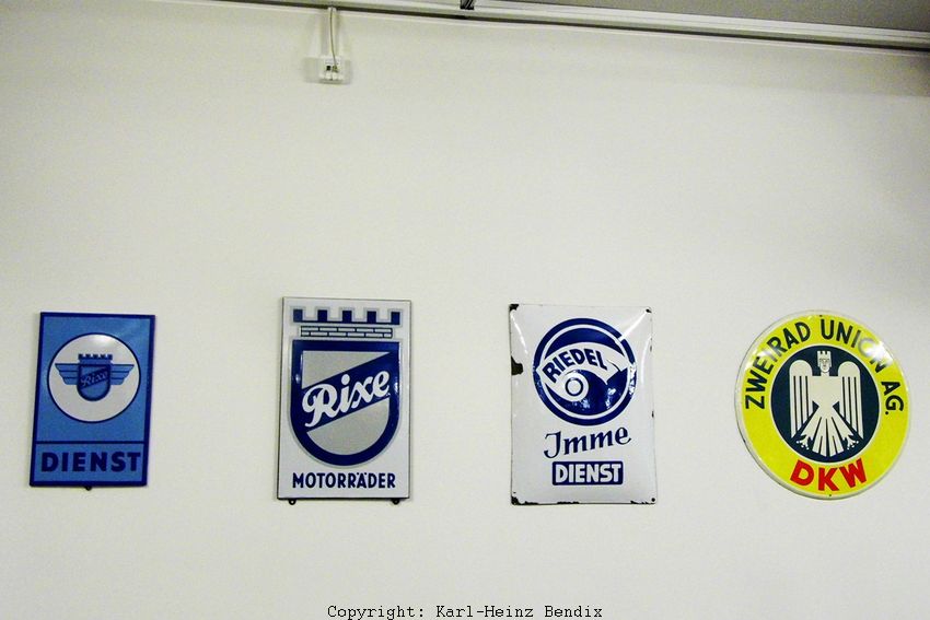 Nun endlich zu den Motorrädern: Die Depot-Ausstellung gliedert sich in drei Gruppen, die in drei Geschossen des Gebäudes platziert wurden. Wie im Folgenden gleich deutlich wird: Die Einbecker Kuratoren sind kürzlich beim Motorrad-Depot von ihrer ursprünglichen Linie bereits abgewichen, auf die im PS.SPEICHER umfangreich (und sehr erfolgreich) ausgeführte Museums-Didaktik zu verzichten. Im Motorrad-Depot hat man schon die ersten Schritte zu einer präsentablen Sammlung zurückgelegt. Das betrifft zum einen die Vorstellung etlicher Exponate über Text-Tafeln, und das betrifft ganz besonders die Gruppierung thematisch zusammen gehörender Motorräder in Gruppen in den drei Ebenen. Genau diese Themenkreise möchten wir nun vorstellen.
