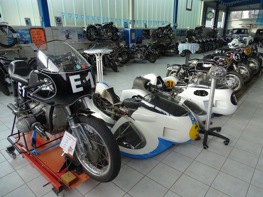 Übrigens gehört eines der ersten jemals gebauten BMW Motorräder, eine R 32 Baujahr 1923 in perfekt restauriertem Zustand, ebenso zum Bestand der Ausstellung wie viele weitere Sondermodelle aus dem Gelände- und Strassenrennsport, genau wie Gespanne aus dem zweiten Weltkrieg oder Modelle von Behörden.