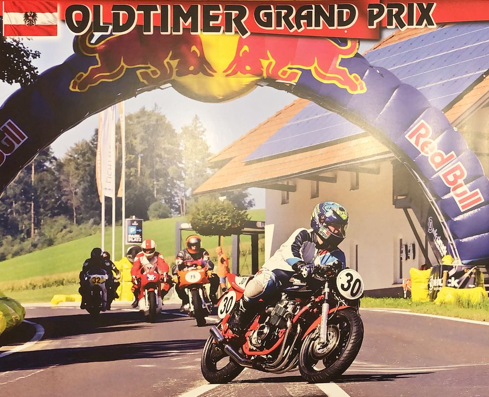 Damit wurde die Honda ins Eck gestellt – aber die erste Liebe verkauft man nicht so einfach, schon gar nicht nach so viel Herzblut, das in das Projekt Honda CB750 gesteckt wurde. „Mein weiterer beruflicher Werdegang beendete dann auch meine Rennfahrerei“ – etwa 20 Jahre bei dm Drogerie Markt, zehn Jahre davon in der Geschäftsführung, sowie fünf Jahre bei der OMV als Gesamtgeschäftsführer der VIVA International; und die Honda verstaubte – mittlerweile übersiedelt nach Zell am Moos am Irrsee – in der Garage. Nach seinem weiteren Schritt in die Selbstständigkeit fasste er „vorerst halbherzig“ den Entschluss, „das Ding wieder fahrtauglich zu machen – wie gesagt eher halbherzig,“ so O-Ton Krammer. Die anfänglich größte Herausforderung war, einen neuen passenden Tank zu finden, der alte Polyestertank hatte sich innerlich aufgelöst – wie nahezu alle Kunststoff- und Gummiteile so nach 45 Jahren. Peter Krammer fand schließlich in Serbien einen Spezialisten für Verbund-Werkstoffe. „Der baute mir einen neuen Carbon-Kevlar-Tank nach der Form des alten Tanks.“ Ernst wurde es mit dem Honda Revival-Projekt schließlich, „als ich bei der Geburtstagsfeier eines sehr guten Freundes nach einigen Glaserln Wein mutig ankündigte, beim Oldtimer Grand Prix 2023 in Schwanenstadt antreten zu wollen – so wie sich das der kleine Peter halt so vorstellte.“ Die ersten Start- und Fahrversuche im neuen Leben der alten Honda waren ernüchternd – Vergaser zu, Zündung defekt, überall rinnt es und tropft es, Bremsen funktionieren nicht, Gabel federt nicht richtig, usw. Trotzdem schaffte es der mittlerweile dem Pensionsalter zueilende Ex-Hobby-Rennfahrer zur Teilnahme am 2023er-Event. „Na ja – ich bin mitgefahren und auch durchgekommen – Platz 8 von 35 Teilnehmern in meiner Klasse war für die Verhältnisse auch nicht so schlecht“, stellt er halbwegs zufrieden fest.
