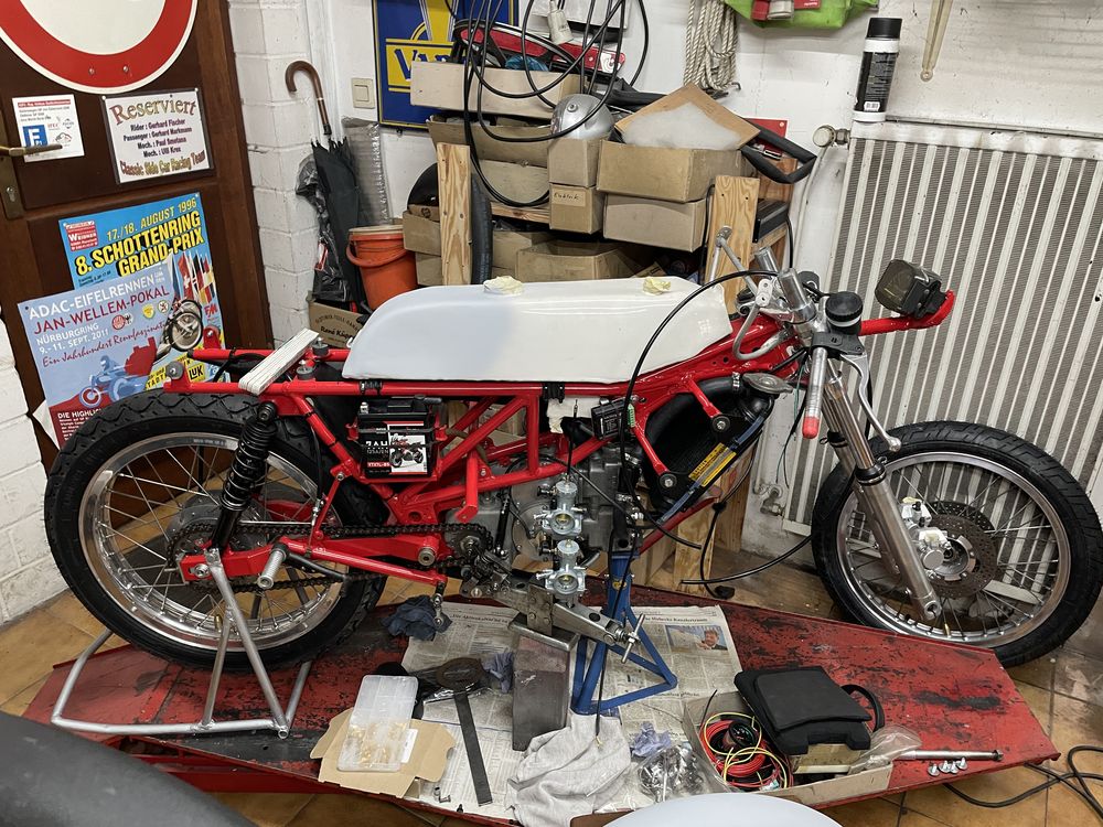 2025 - Gerhard Fischer begann in seiner Werkstatt in Heidelberg mit dem Aufbau der DRS Rennmaschine. Im Februar 2025 wurde bei ihm leider eine schwere Erkrankung diagnostiziert. Nach längerer Zeit im Krankenhaus und einer anschließenden Reha, konnte Gerhard wieder an der DRS weiterarbeiten und das Motorrad im September 2025 fertigstellen.