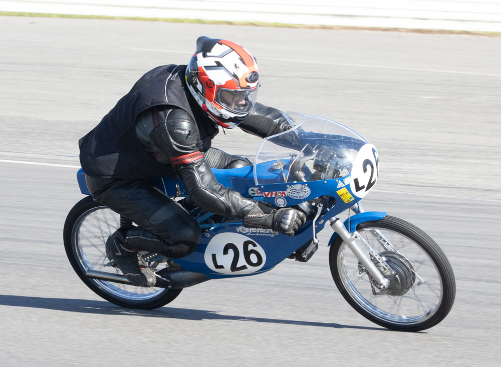 | Dieses historische Motorrad ist ein extrem leichtes, hochdrehendes Einzylinderfahrzeug mit im Vergleich zu modernen Motorrädern sehr schmalen Reifen, fahrradähnlicher Handlichkeit und geometriebedingt geringen Schräglagewinkeln bei gegebener Kurvengeschwindigkeit. |